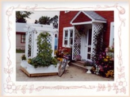 He built a unique trellis with seats that also had flower boxes in it so morning glory vines could grow up it. He planted a beautiful garden along the front of the barn creating a very warm and welcoming entrance. We enjoyed being sample tasters that come along with being next to a bakery.