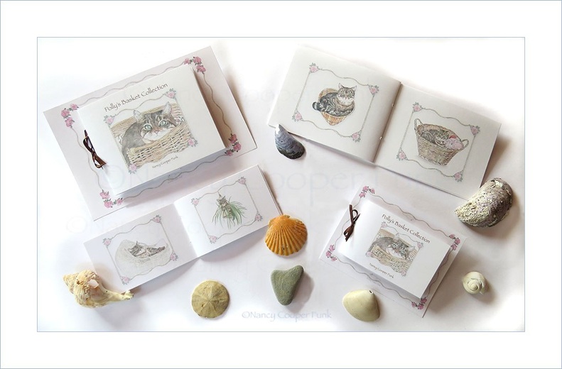 Our cat, Polly loved all kinds of baskets. This little book is a collection of ink & watercolors