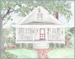 With fine pens & watercolors and working from your photos, I try to capture the feeling of each house by focusing on the subtle details that make each house unique.